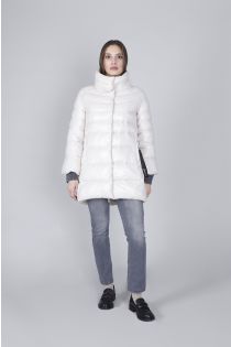 Cappa svasata con manica kimono e collo avvolgente realizzata in nylon lucido per un look casual e versatile. vestibilità regolare perfetta per un outfit alla moda e funzionale. la modella è alta 172 cm e indossa la taglia s.