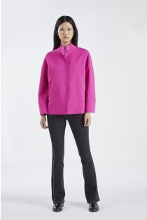 Cappa in tessuto tecnico accoppiato con interno a contrasto colore e rifiniture a taglio vivo