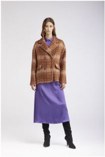 cappotto corto doppiopetto tessuto a quadri quadro multitabacco