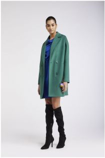 Cappotto basico doppiopetto realizzato in un panno poliviscosa.