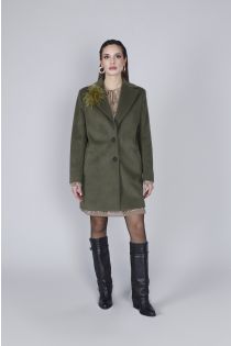 Cappotto monopetto con martingala posteriore e spilla con piuma removibile. linea pulita ed elegante ideale per un look casual chic nei mesi più freddi. vestibilità regular. la modella è alta 172 cm e indossa la taglia s.