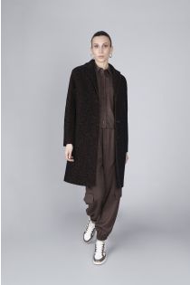 Cappotto monopetto al ginocchio dalla linea ad ovetto realizzato in tessuto floccato. un capospalla casual e sofisticato perfetto per look invernali comodi e ricercati. vestibilità regular. la modella è alta 173 cm e indossa la taglia s.
