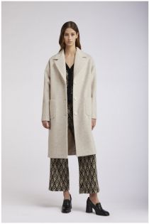 Cappotto monopetto con tasche a toppa realizzato in un panno poliviscosa disegno resca.