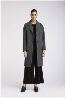 Cappotto monopetto con tasche a toppa realizzato in un panno poliviscosa disegno resca.