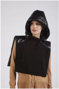 Cappuccio realizzato con il davanti in maglia e retro imbottito. pratico comodo e divertente accessorio che ogni donna dovrebbe avere nel proprio armadio!