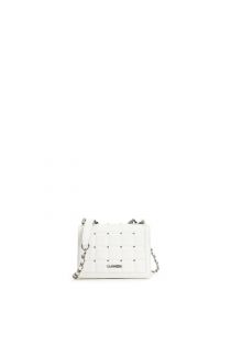 cartella con patta lunga con trapuntatura a quadri e borchiette piramidali bianco