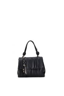 Cartella in morbido materiale con caratteristica plissettatura ondulata e manici annodati con colore in contrasto arricchita da accessorio pendente Cafènoir