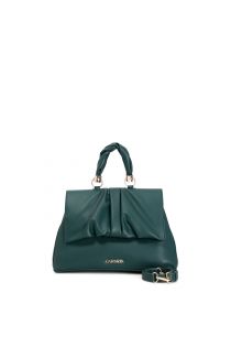 Cartella in similpelle dalla struttura semirigida con pattina valorizzata da morbide pieghe e manico twist .