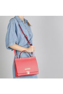 cartella rigida in similpelle effetto saffiano con bustina corallo