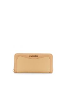 Portafoglio effetto pelle con zip cornice imbottita e lettering in metallo