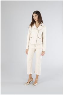 Giubbino tipo chiodo realizzato in similpelle dall'effetto invecchiato. taglio dritto e cerniera trasversale. tasche con zip. capo versatile da aggiungere al tuo guardaroba.