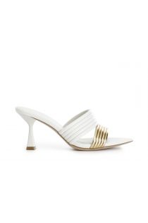 Ciabatta bicolor con fasce imbottite. soletto in pelle. dalla forma sfilata questa calzatura ti regalerà un tocco di eleganza e glamour. tacco a rocchetto alto 70mm.