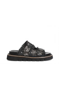 ciabatta denim doppia fibbia nero