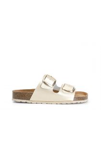 Ciabatta donna con doppia fibbia. comodo fussbett pelle alto 2.5 cm.