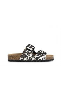 Ciabatta donna in tessuto stampato. doppia fascia con fibbie. comodo fussbett.