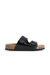 Ciabatta donna in vernice. doppia fascia con fibbie. comodo fussbett.