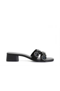 ciabatta in camoscio con accessori gioiello nero