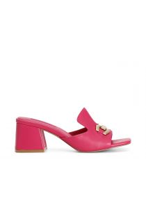 Ciabatta in pelle con accessorio dorato. soletto in pelle. tacco alto 50 mm.