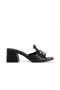 ciabatta in pelle con accessorio nero