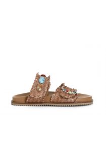 ciabatta intrecciata con pietre e fibbia gioiello cuoio