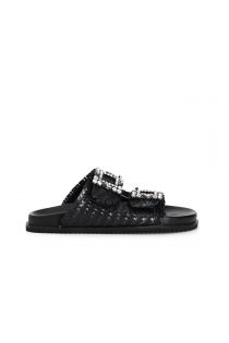 ciabatta intrecciata in pelle con doppia fibbia gioiello nero