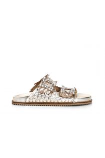 ciabatta intrecciata in pelle con doppia fibbia gioiello platino