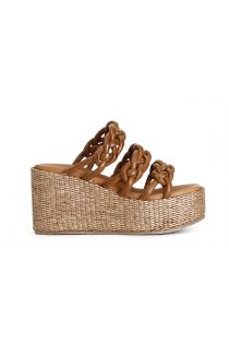 Ciabatta con tre fasce motivo intreccio. zeppa fasciata in rafia.