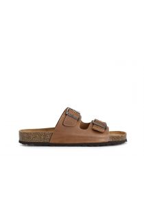 Ciabatta uomo in pelle. doppia fascia con fibbie. comodo fussbett.