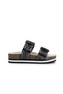 ciabatte doppia fibbia in raffia intrecciata nero