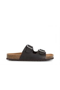 Ciabatta due fasce in pelle su footbed.
