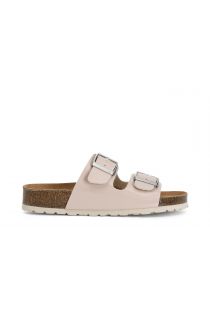 ciabatte due fasce in vernice con fibbia cipria