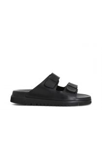 Ciabatte in pelle con doppia fibbia.