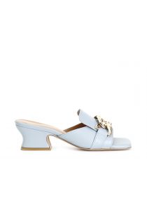ciabatte in pelle con catena celeste
