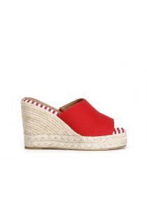 ciabatte in tessuto su zeppa corda rosso