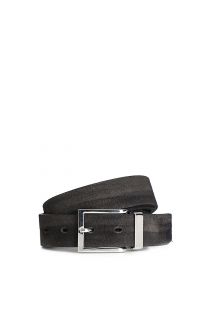 Cintura da uomo in pelle e camoscio reversibile con fibbia in metallo.