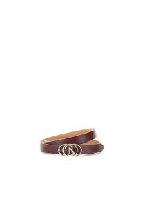 cintura in pelle a taglio vivo con fibbia in metallo burgundy