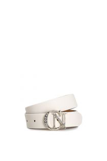 cintura in pelle con fibbia logata in metallo con strass panna
