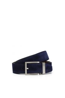 cintura uomo double face in vitello e camoscio blu/t.moro