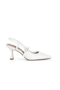 Décolleté con cinturino e laccio dietro. il soletto è in pelle. calzatura dalla forma sfilata.il tacco è di 7 cm.
