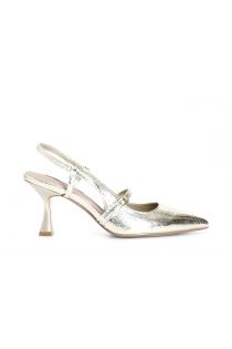 Décolleté con cinturino e laccio dietro. il soletto è in pelle. calzatura dalla forma sfilata.il tacco è di 7 cm.