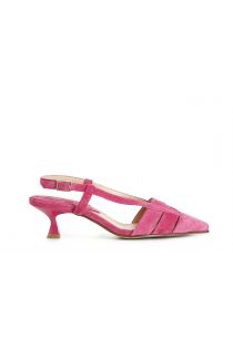 décolleté due fasce in pelle scamosciata con laccio dietro fuxia