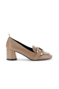 Décolleté in similpelle effetto stropicciato con morsetto dorato. linea comoda punta arrotondata tacco grosso da 6 cm. eleganza e praticità per un look sofisticato ogni giorno.