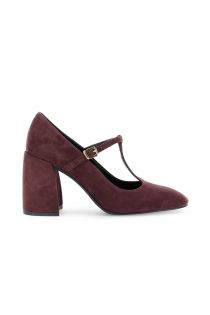 décolleté in camoscio con laccino a"t" bordeaux