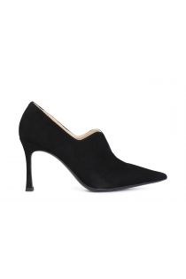 Décolleté in camoscio con taglio a "v". tacco fine alto 87 mm. forma sfilata. fodera e soletto sono in pelle. calzatura dallo stile elegante e femminile.