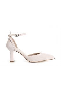 décolleté in camoscio con toppone e laccio alla caviglia cipria