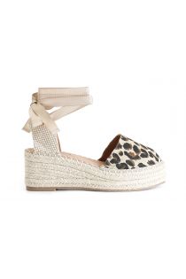 Sandali in canvas con allacciatura alla schiava zeppa in corda di 10.5 cm e plateau di 3.5 cm. soletto in pelle.