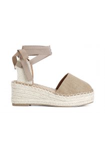 Sandali in canvas con allacciatura alla schiava zeppa in corda di 10.5 cm e plateau di 3.5 cm. soletto in pelle.