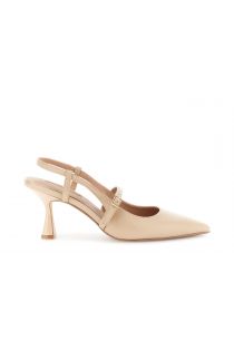 décolléte in materiale sintetico effetto pelle con fibbia beige