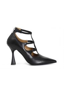 Décolleté da donna in nappa dallo stile elegante e femminile. calzatura arricchita da fasce elastiche sul collo del piede. tacco slim leggermente a rocchetto altezza 95mm. soletto in morbido pellame.