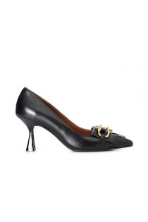 Décolleté in pelle con frange e morsetto. calzatura dalla forma sfilata. tacco alto 70 mm. il soletto è in pelle.